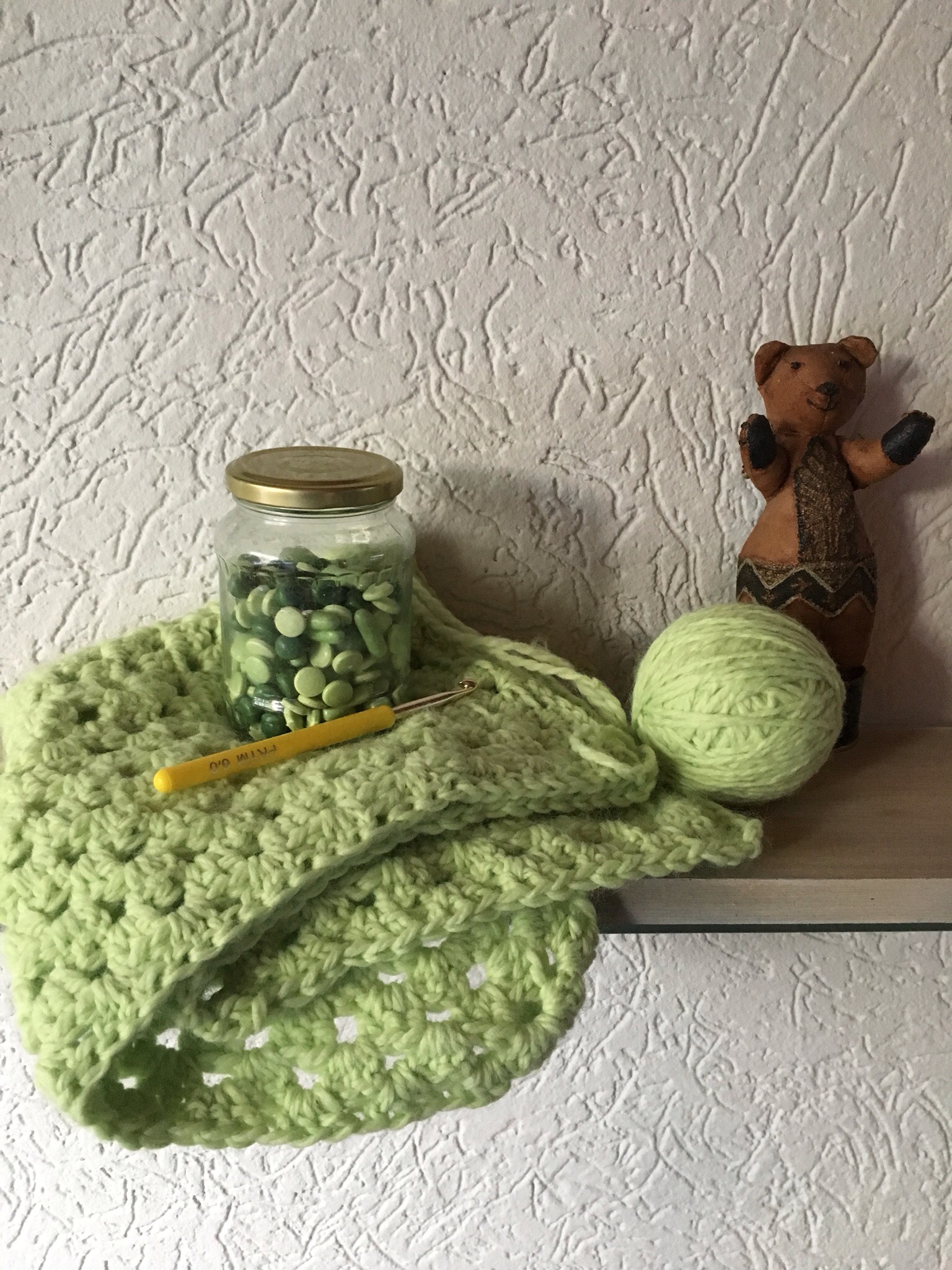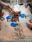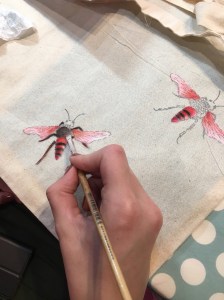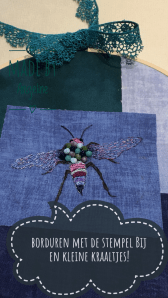 Ben ik ook druk geweest met mijn borduurstempel Bij en het borduren met kraaltjes.