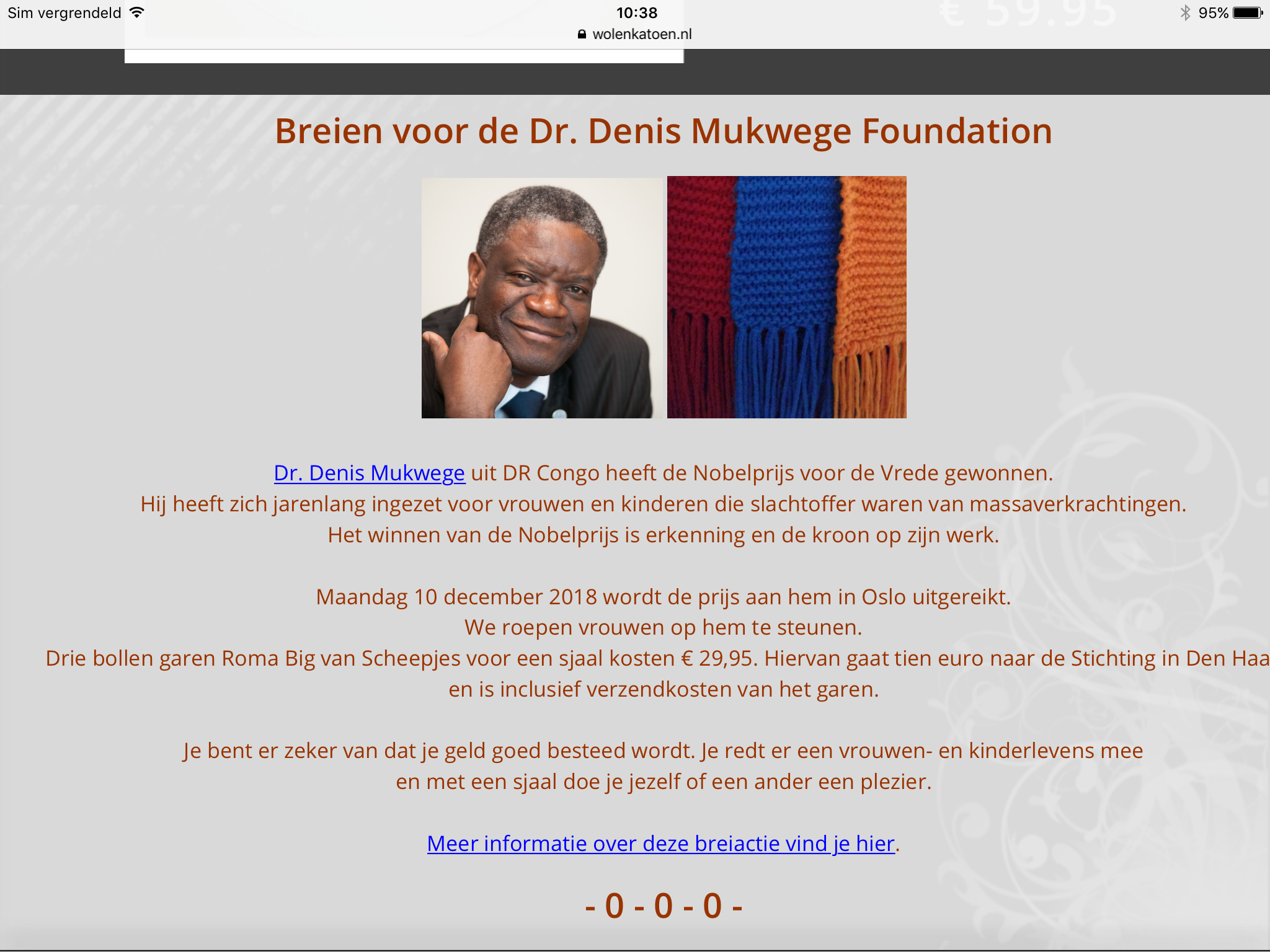 De aktie is opgezet door Ria Bakker en wil haar hiermee tot steun zijn en natuurlijk in eerste plaats Dr. Mukwege.